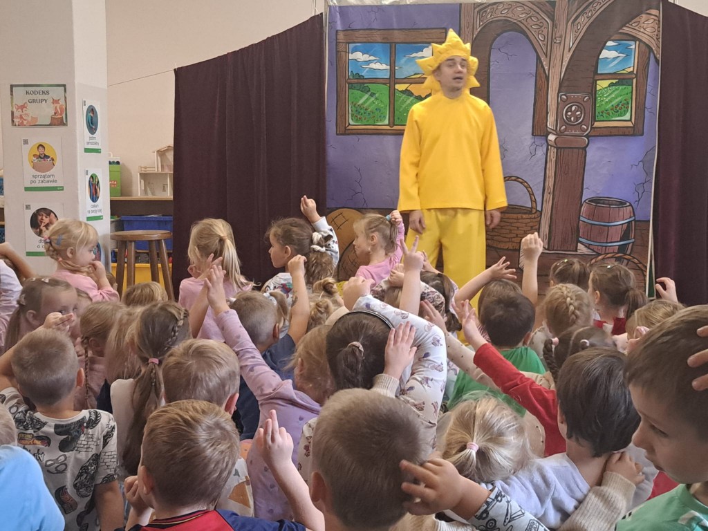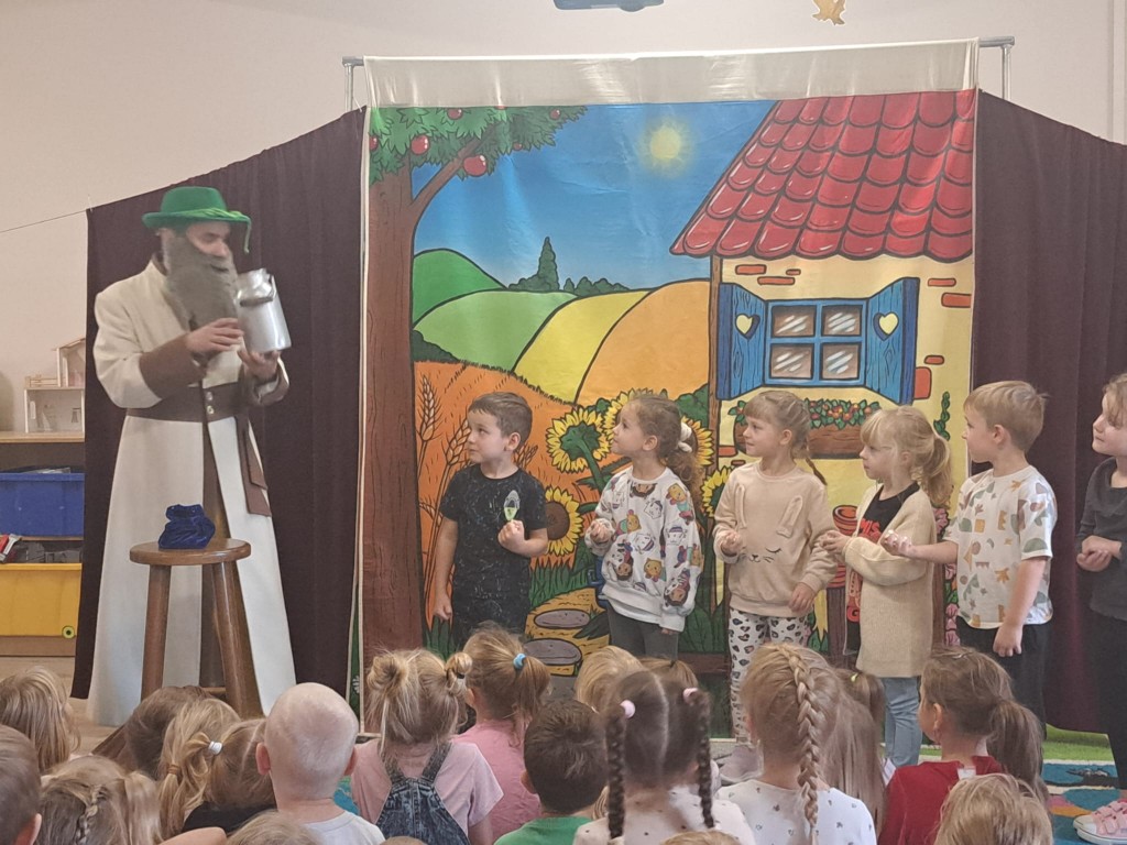 W poniedziałek nasze przedszkole odwiedził teatr "Bajkowe Skarbki Śląska". Aktorzy zaprezentowali przedstawienie pt.: "Gospodarz i Juroszek". Opowieść przedstawiła moc wzajemnej pomocy, przyjaźni i współpracy. Dzieci mogły same stać się bohaterami tej historii i aktywnie wiąć w niej udział.