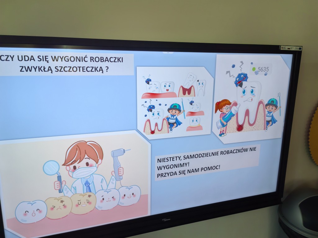 13 i 14.11.2024 r. nasze przedszkole odwiedziła Pani stomatolog, która przeprowadziła prelekcję na temat dbania o higienę zębów. Przedszkolaki poznały budowę jamy ustnej oraz tajniki prawidłowego szczotkowania zębów, tak aby były one piękne i zdrowe.
