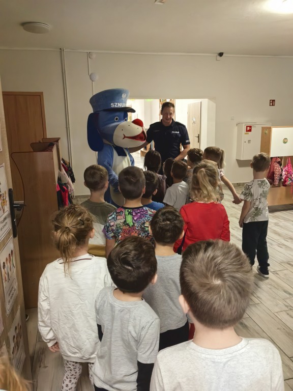 Nasze przedszkole miało dziś przyjemność gościć policję wraz z niezwykłym bohaterem - Sznupkiem. Z jego pomocą, Panowie przedstawili nam zasady bezpiecznego zachowywania się w trakcie wakacji. Dzięki temu, mamy nadzieję że ten okres stanie się wspaniałym czasem, który każdy spędzi w spokoju i zdrowiu.