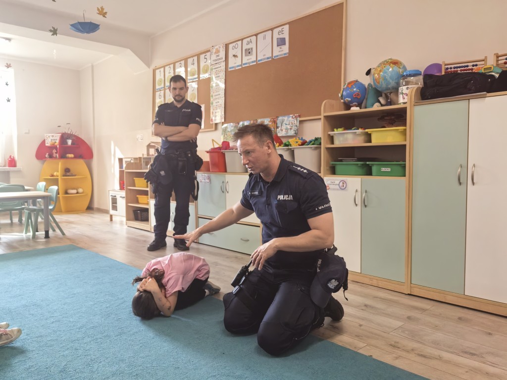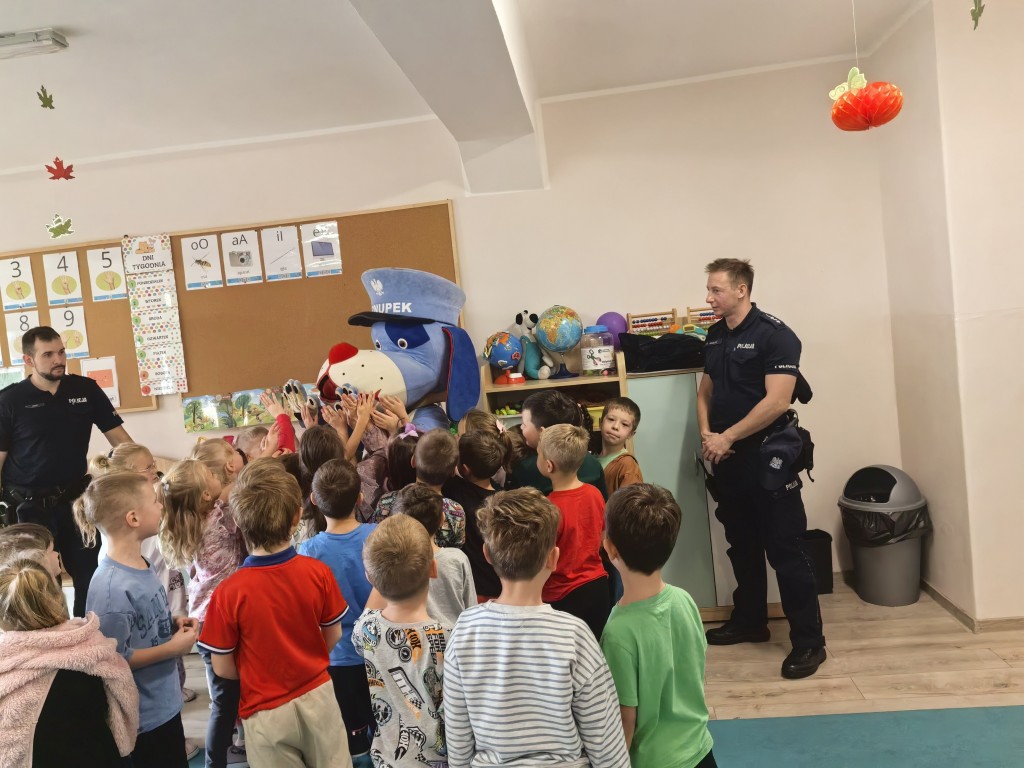 Wczoraj nasze przedszkole odwiedziła policja wraz ze swoim przyjacielem Sznupkiem. Przedszkolaki miały okazję wysłuchać prelekcji na temat zawodu policjanta, a także zasad bezpiecznego zachowywania się. Mundurowi zwrócili szczególną uwagę na zachowanie ostrożności w kontaktach z nieznajomymi oraz na to, jak się zachowywać w przypadku ataku przez agresywnego psa. W trakcie zadań praktycznych - ćwiczyliśmy przyjmowanie tzw. pozycji żółwia. Serdecznie dziękujemy za odwiedziny!